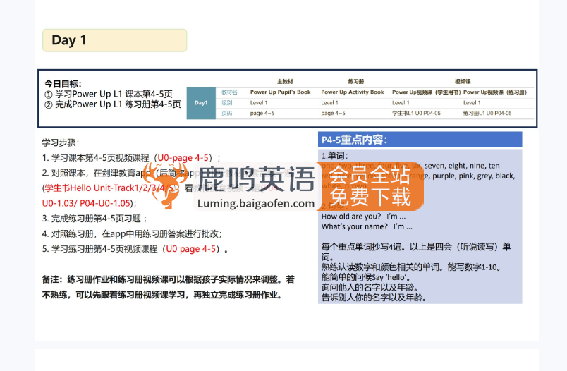 PowerUP 0-4级自学规划表文档 百度网盘下载想要让孩子的英语水平在寒假期间实现飞跃吗?现在,我们为您提供了一套全面的 PowerUP 0-4级自学规划...